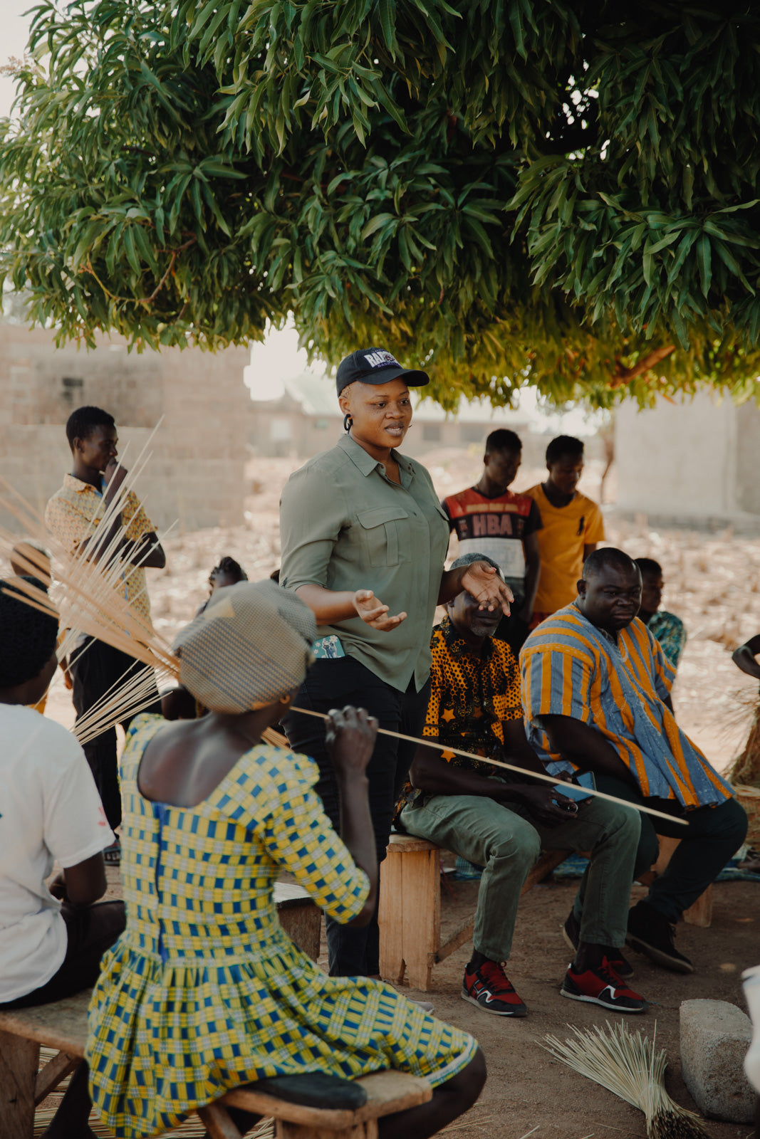 Pokka Daa, Head of Weavers and Material Sourcing, who was born in Bolga and attended Fashion and Design school in Ghana before starting to work in the basket weaving sector.